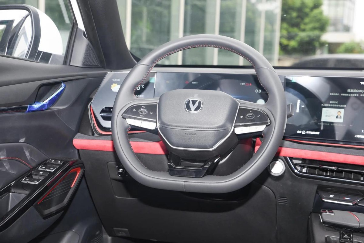 座艙及配置層面,長安X5 PLUS配備了30英寸的三聯屏,中控臺上方和車門板等區域還帶有紅色的元素,加上拼色配色的一體式運動座椅后,很好地提升了車內的駕控氛圍。大連屏可以顯示的信息比較豐富,并且左右兩側都屏幕都帶有傾斜角設計,可以更好地掌握信息。