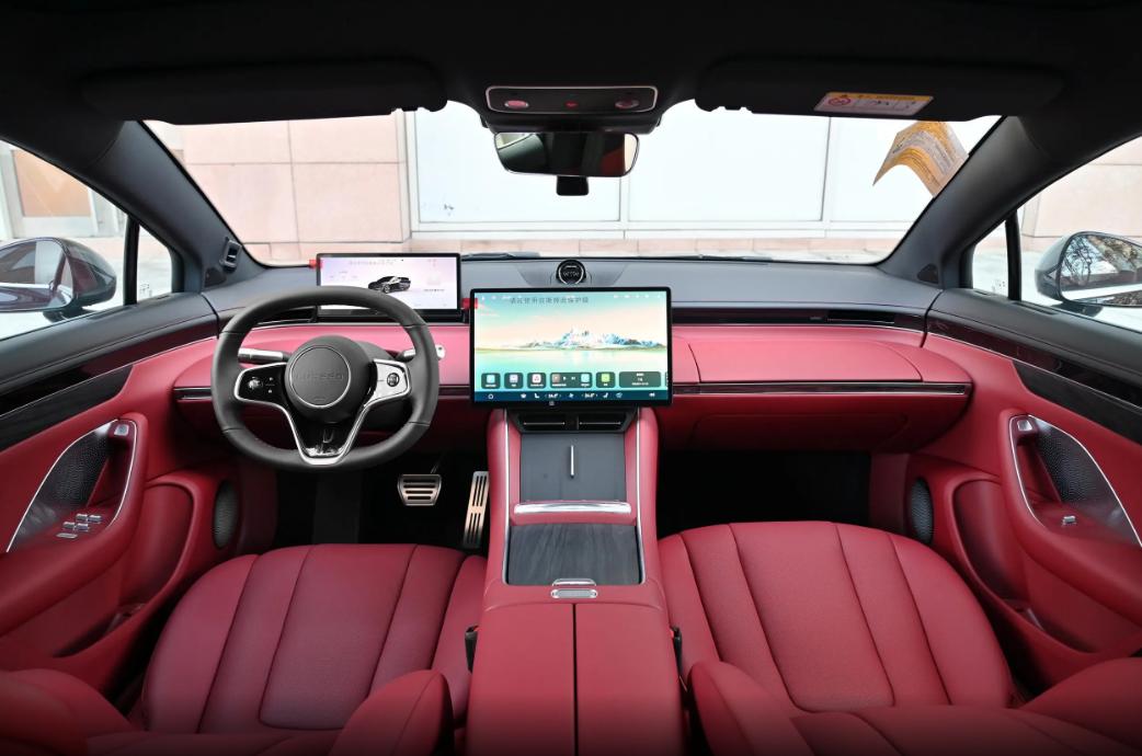 智界S7的座艙布局帶來較為強烈的飛船觀感,中控臺與車門形成了環抱式的邊角輪廓,錯落的階梯式臺面還加入了深淺組合的面料包覆,而儀表與中控屏也采用一前一后的設計,呈現出視覺上的層次感。智界S7內置Harmony OS智聯系統,應用包含了多媒體、HUAWEI Hicar互聯、車聯網和5G功能,整車配有12個超聲波雷達、3個毫米波雷達和10個外部攝像頭,通過HUAWEI ADS系統能提供L2級智駕輔助,支持自動泊車、高速NOA、匝道自動駛入(出)等便捷功能。
