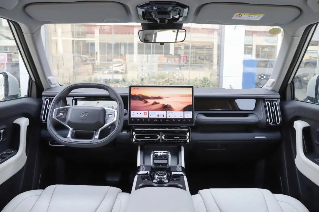 山海T1的座艙搭載了15.6英寸的中控大屏,搭載了8155的車機芯片,并且在屏幕下方保留了一排物理按鍵,提供了一定的便利性。哈弗猛龍則是搭載了10.25英寸的全液晶儀表盤+15.6英寸的中控屏屬于常規(guī)的組合方式,內(nèi)置了高通驍龍8155車載智能芯片,還可以匹配HUAWEI HiCar,并且同樣保留了實體按鍵和旋鈕。