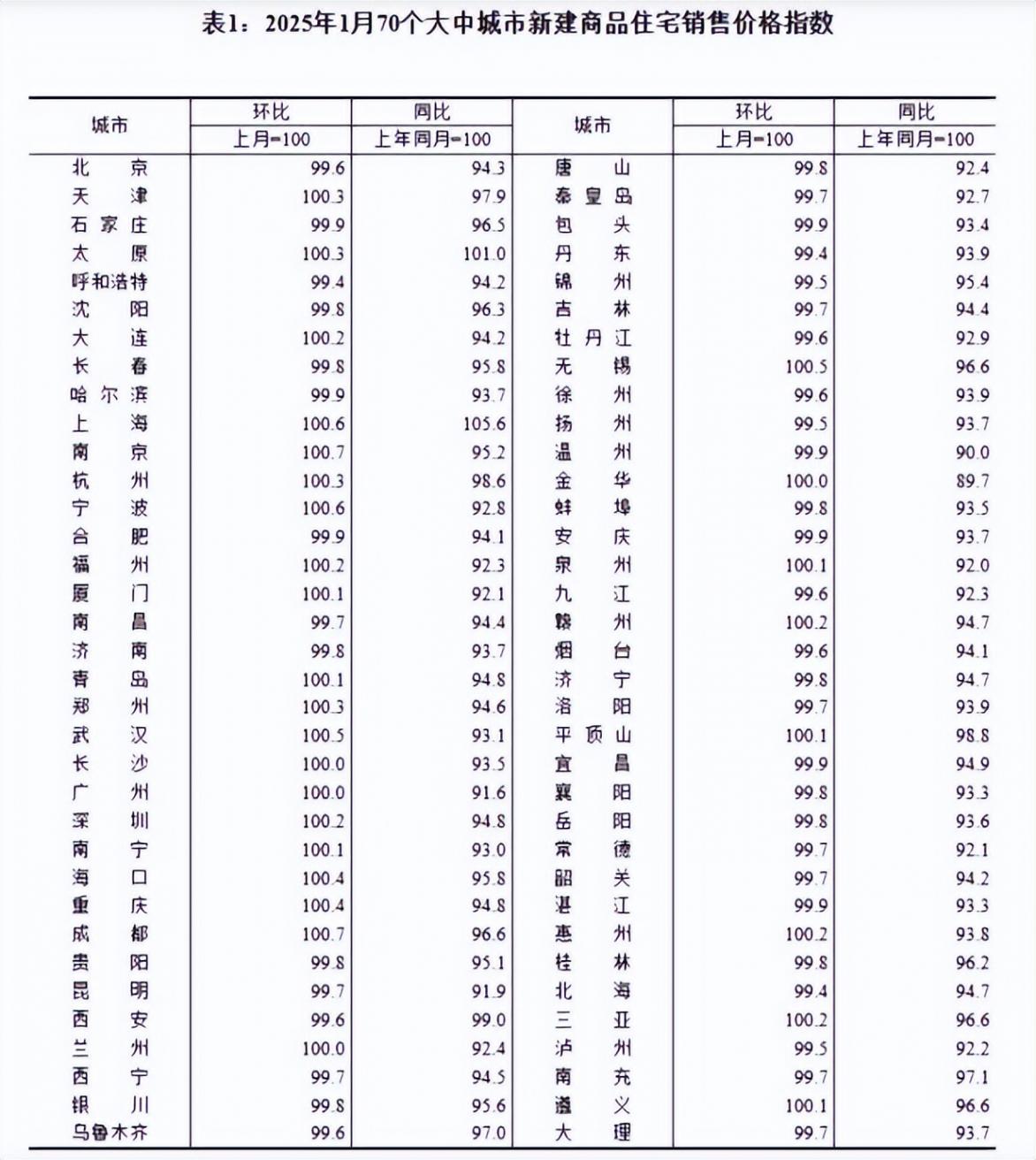 日前,國家統(tǒng)計局發(fā)布2025年1月70個大中城市商品住宅銷售價格變動情況。其中,新房價格環(huán)比上漲城市較上月有所增加,一線城市新房和二手房價格環(huán)比均繼續(xù)上漲。