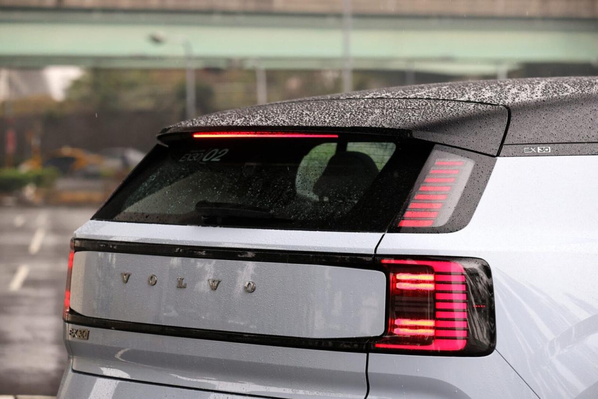 至于車尾造型可說是EX30最具亮點與特色的設(shè)計,除了整個輪廓相當(dāng)厚實飽滿之外,更是將紅色的LED燈組分為上下雙層式的設(shè)計,其中上層以條列式堆棧排列并與尾窗玻璃兩側(cè)線條相互結(jié)合,下層則是透過黑色飾板將兩側(cè)尾燈組的線條結(jié)合,而呈現(xiàn)出獨特的雙框式樣貌,不僅造型亮眼動人,視覺質(zhì)感更是出眾。