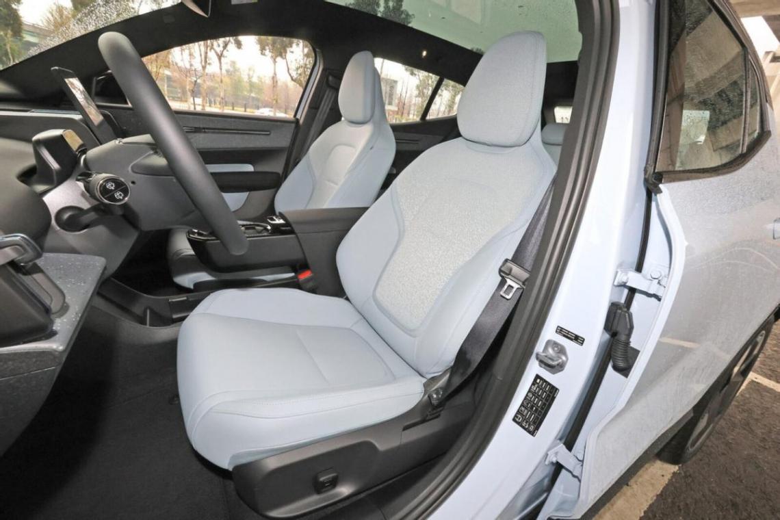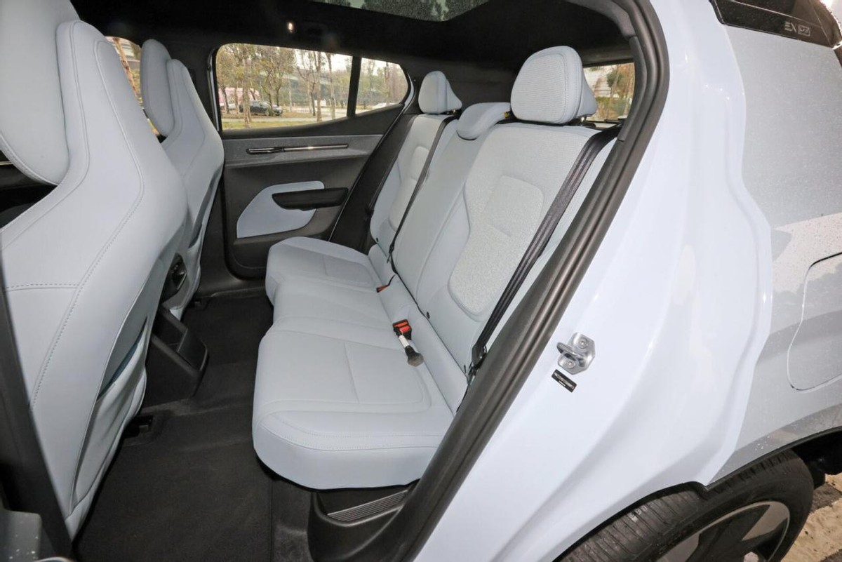 而后座空間表現(xiàn),畢竟EX30是部4.2米的小SUV,比XC40還要小上一號,因此身高175cm的成人實際乘坐,膝部離前椅背僅約有2指幅的距離,雖不寬裕但也不至于有侷促感,加上約1個拳頭的頭部空間以及良好的椅背傾斜角度,實際坐起來還算舒服。