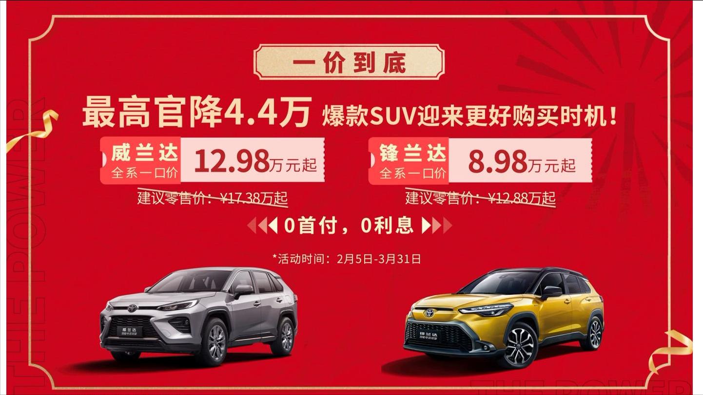 我們先來看看這則聲明:廣汽豐田在新春開工第一天正式宣布一口價官降,推出“一價到底”和“一保到底”購車福利。一價到底:威蘭達全系一口價12.98萬元起,鋒蘭達全系一口價8.98萬元起;一保到底:一口價車型威蘭達和鋒蘭達享有發動機、變速箱以及雙擎混動電池終身質保權益;此外廣汽豐田誠意再進一步,品牌全系雙擎車型均享有混動電池終身質保。