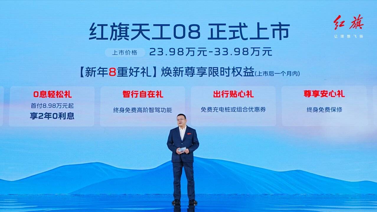 1月7日,紅旗天工08產品上市發布會在長春一汽研發創新基地舉行。新車定位于中大型豪華純電SUV,共推出兩驅和四驅2種驅動模式共5個版本,官方指導價為23.98萬元-33.98萬元。