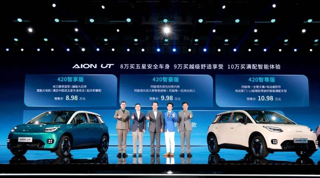 而埃安UT鸚鵡龍就不一樣了,從其8.98萬元—10.98萬元的預售價來看,主打的應該是8萬元級的經濟型兩廂純電車市場。