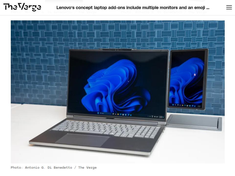 Magic Bay Dual Display Concept 是一個雙屏配件,包含兩個 13.3 英寸屏幕,可以掛載到 ThinkBook 16p Gen 6 上。