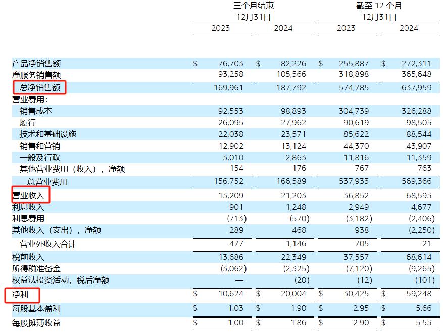 在全球電商企業中,亞馬遜的霸主地位難以撼動。2024年,亞馬遜的電子商務活動收入達8020億美元,全年營收6380億美元,凈利潤592億美元,市值超過2萬億美元。不僅如此,其活躍賣家數量眾多,業務覆蓋全球20多個國際站點,同時覆蓋B2C和B2B業務模式,服務包括逾2億付費Prime會員在內的數億顧客所帶來的全品類、全價格階段的購買需求。