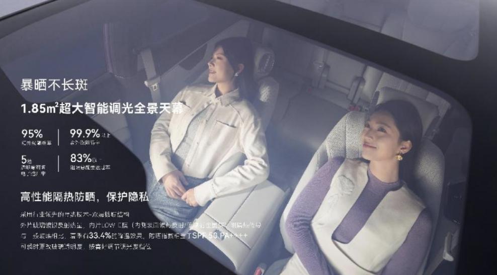 新車配備高阻尼、高減震的人體工學(xué)座椅,塑造出轎跑級(jí)別的舒適駕乘姿態(tài)。1.85㎡ 的超大面積智能調(diào)光全景天幕,配合高性能隔熱防曬的前擋風(fēng)玻璃以及四車門雙層隱私隔音玻璃,為車內(nèi)營(yíng)造出寧?kù)o、愜意的氛圍。