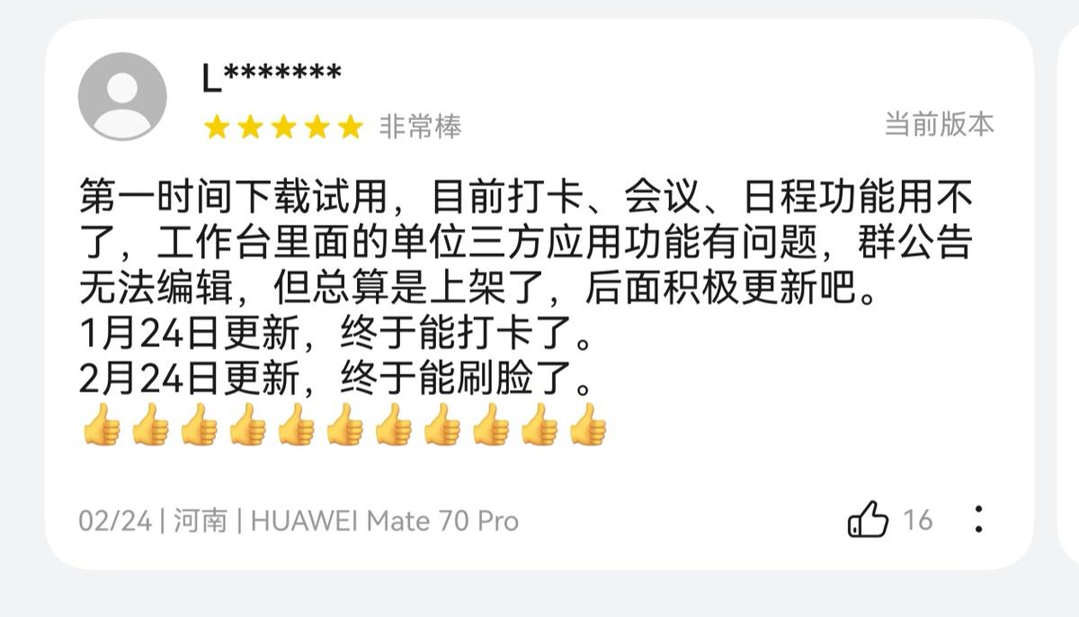 經(jīng)常要用企業(yè)微信的小伙伴們發(fā)現(xiàn)了嗎,鴻蒙原生版企業(yè)微信在這幾天又迎來了重要更新,不僅新增了客戶聯(lián)系、日程管理等功能,還支持了WiFi打卡、人臉識別等多種打卡方式,頻繁的更新讓功能日漸完善,也獲得了網(wǎng)友點(diǎn)贊。值得注意的是,鴻蒙原生版企業(yè)微信在細(xì)節(jié)之處展現(xiàn)了HarmonyOS NEXT的優(yōu)勢,有些體驗(yàn)甚至超越了iOS、安卓版本。