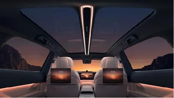 沃爾沃ES90座艙以“呼吸感設計”為核心,配備紫外線阻隔率99.9%的全景天幕、四區空調與過敏原過濾系統(PM2.5阻隔率95%),獲ASL過敏友好認證1113。Bowers & Wilkins音響系統支持杜比全景聲,配合行業頂級靜音工程,打造移動音樂廳體驗1013。超長軸距與可調光天幕的設計,兼顧家庭出行與商務場景。