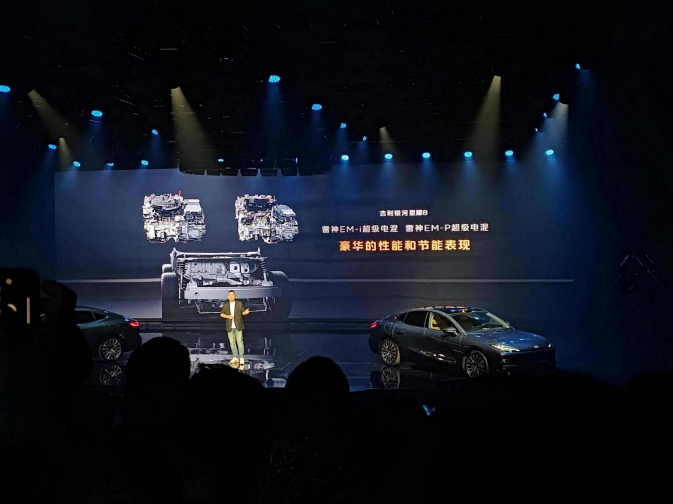 搭載雷神EM-i超級電混的吉利銀河星耀8,搭載全球最高熱效率46.5%的1.5L混動專用發動機與E-DHT 11合1電混專用電驅,兩大超級節能硬件助力其成為5米級最低油耗轎車,饋電油耗僅為3.36L/100km;搭載雷神EM-P超級電混的版型,則擁有6.49s的零百性能表現,百公里饋電油耗僅為3.67L/100km。