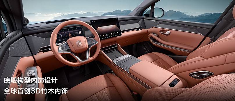 內(nèi)飾方面,漢L繼續(xù)采用懸浮式中控屏+液晶儀表的組合,中控區(qū)域保留了一定數(shù)量的物理按鍵和旋鈕。內(nèi)飾整體的設(shè)計(jì)以“脊”為靈感,通過縱向的視覺引導(dǎo)展現(xiàn)了精神支柱的理念。細(xì)節(jié)方面,漢L車內(nèi)采用了大量軟質(zhì)材料,此外還首次應(yīng)用了竹木飾板切割的理念。