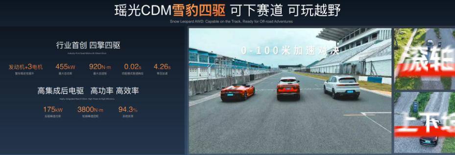 性能方面,奇瑞推出混動專用 2.0TGDI發(fā)動機,能夠實現(xiàn)280kW的功率,全球混動行業(yè)最高電機轉速24000rpm,遠超行業(yè)主流,讓每一瓦特 都燃燒你的激情?,幑釩DM-S電四驅搭載了M3X超混平臺,其最大總功率達到了455kW,最大總扭矩920N·m,零百加速僅4.26秒,既可下賽道,還可玩越野。