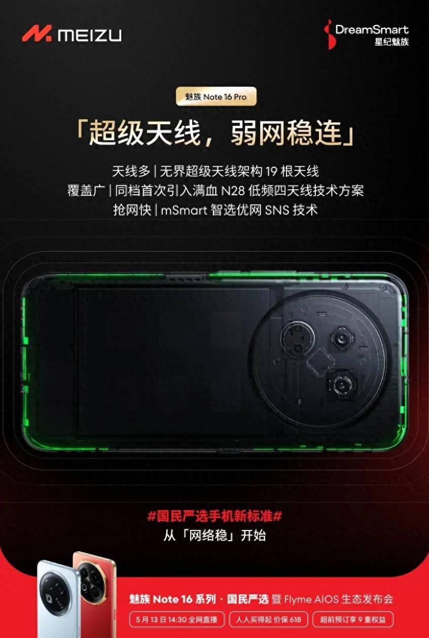 智能手機性能內卷日益激烈的今天,信號與定位能力卻常常被廠商忽視。但對于普通用戶來說,電梯里刷不出付款碼、地下車庫找不到車、導航偏差導致繞路等場景,才是日常使用中最折磨人的痛點。5月13日即將發布的魅族Note 16 Pro,以“超級信號戰神”之名強勢破局,用19根超級天線+雙頻GPS+三頻北斗的王炸組合,徹底終結信號焦慮。