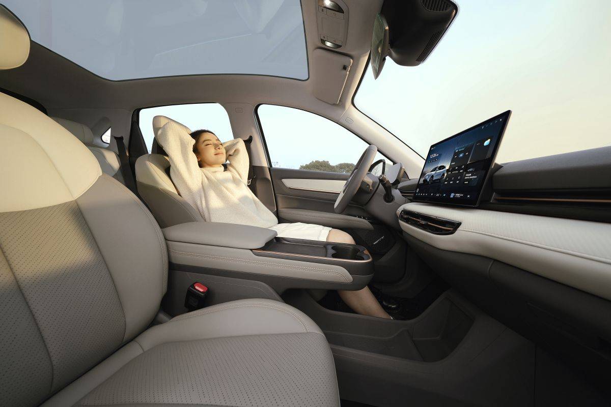 走進車內,“時空悅境”內飾設計營造出簡約、時尚、溫暖的家居氛圍。對稱式寬庭環抱座艙,層疊的型體打造出豐盈的縱橫感,讓內部空間得到最大化拓展。大量親膚材料的運用,搭配自然柔光的顏色,使人一坐進車內,就能感受到家一般的溫馨。1.2平方米的蒼穹之頂全景天幕,將天空的美景搬進車內,讓光時刻呵護用戶。14.6英寸的超薄沉浸中控屏,搭載內嵌AI大模型的智能車機系統,操作流暢,功能豐富。云舒座椅采用分區一體化造型,具有極佳的包裹感和細膩的皮紋觸感,讓人倍感舒適。