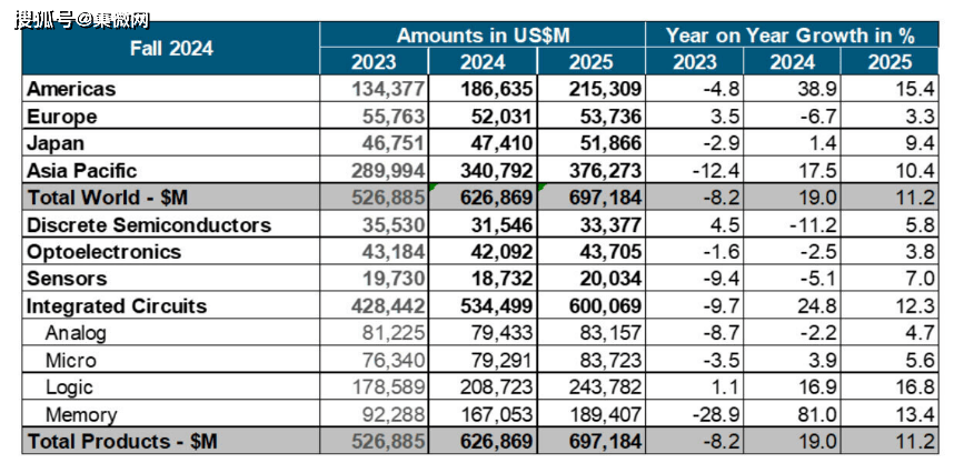 根據世界半導體貿易統計組織(WSTS)在2024年12月發布的秋季預測報告,2025年全球半導體市場規模預計將比2024年增長11.2%,達到6970億美元左右。其中,亞太地區預計將保持10.4%的較高增長率,繼續在全球半導體市場中發揮重要的增長引擎作用。這主要得益于亞太地區在半導體制造、封裝測試等領域的強大產業基礎,以及在消費電子、5G 通信、人工智能等新興技術應用方面的快速發展。