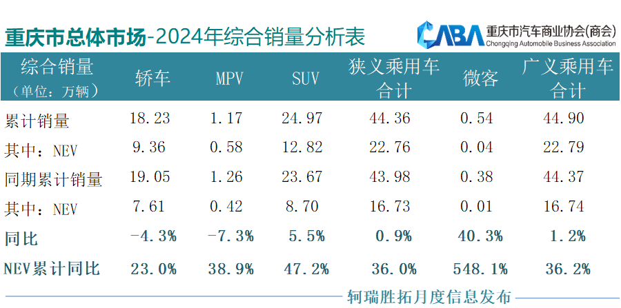 經(jīng)歷了2024年上半年消費(fèi)者持幣觀望的階段后,下半年的重慶車(chē)市在以舊換新政策及當(dāng)?shù)卣鞣N利好政策的助推下,銷(xiāo)量增速明顯恢復(fù),最終也收獲了全年同比增長(zhǎng)的出色表現(xiàn)。