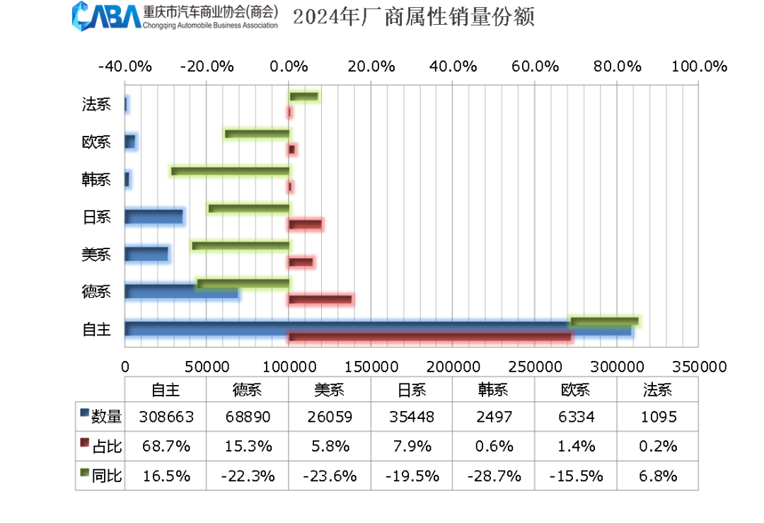 相較于全國(guó)車(chē)市穩(wěn)中有進(jìn)的態(tài)勢(shì),重慶車(chē)市的表現(xiàn)又如何呢?面對(duì)“價(jià)格戰(zhàn)”的持續(xù)攪局,重慶車(chē)市在2024年市場(chǎng)內(nèi)卷的大環(huán)境下仍然取得了不錯(cuò)成績(jī)。