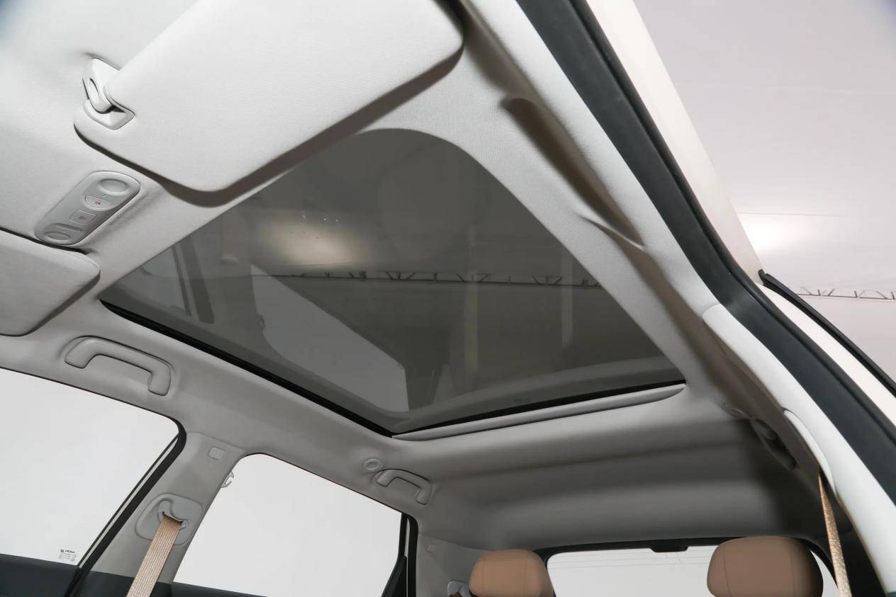 前排主副駕之間貫通式設計,方便從左右兩側上下車,不用擔心狹窄車位的停車問題,中控臺中間位置呈曲面造型,用皮質包覆,門板內側、中央扶手等位置都是用的皮質包覆,很上檔次。