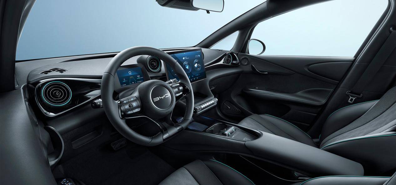 海豚的內飾也頗具特點,采用類似仿生學的設計,方向盤和中控臺的造型都跟魚尾相似,有著豐富的層次,車內保留了大量的物理按鍵,且這些按鍵的設計也都是類似圓柱形樣式,看著很有意思,液晶儀表尺寸比較小,只有5英寸,中控屏尺寸為12.8英寸,支持自適應旋轉,內置DiLink系統,車機界面也是類似PAD,操作體驗不差,也支持語音識別控制,不過只有單音區,識別精度挺高,用著也比較方便,內飾的材質方面要略差一些,內飾塑料感稍重了點。