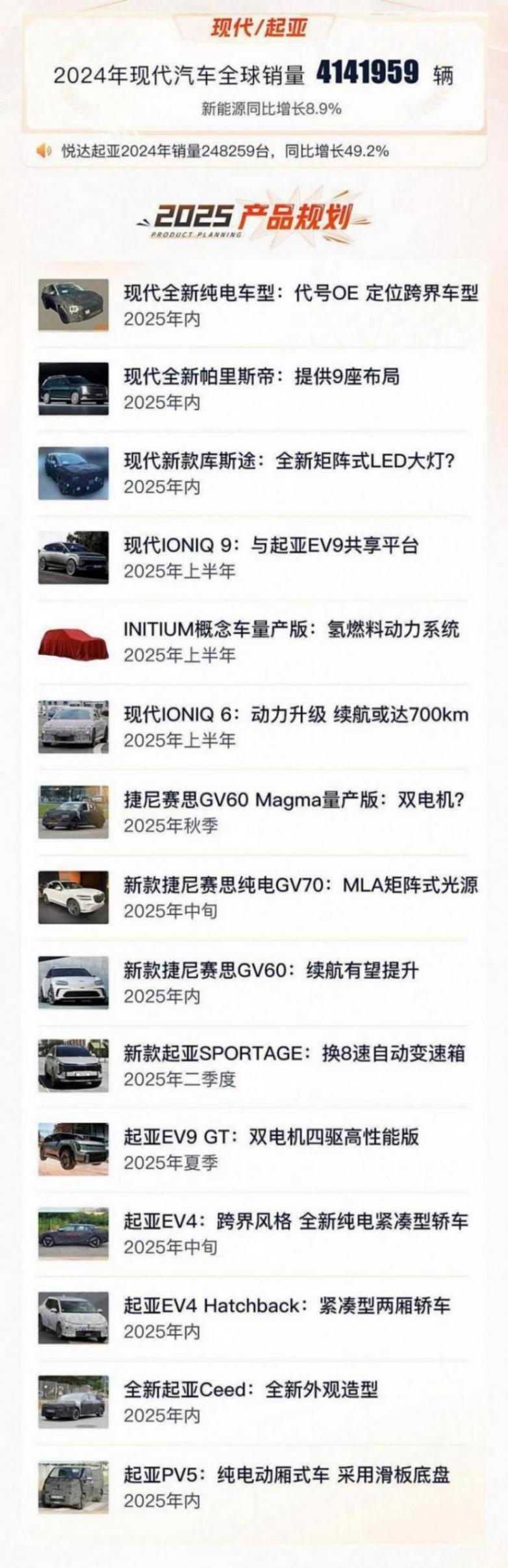 這不,在新的2025年時間里,現代、起亞、捷尼賽思目前已知的將在華推出的新車型就有不下15款。因此,從這一新車陣容來看,現代集團在2025年里勢必是要打個“翻身仗”了。而屏幕前的你如果也想要在2025年買臺韓系新車,那我的建議是,認準這1款車型就夠了,下面就讓我們來看看是哪1款車型。