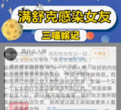 據(jù)女友爆料,她在與滿舒克交往期間不幸染病,而男方對此卻毫不負責,甚至在術(shù)后對她冷漠無情。這一事件迅速在網(wǎng)絡(luò)上擴散,網(wǎng)友紛紛對滿舒克的行為表示譴責。