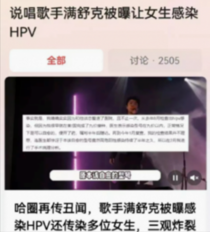 真是太炸裂了!知名嘻哈歌手滿舒克感染HPV還傳染多名女生,網(wǎng)友直呼:九價也防不?。?/strong>