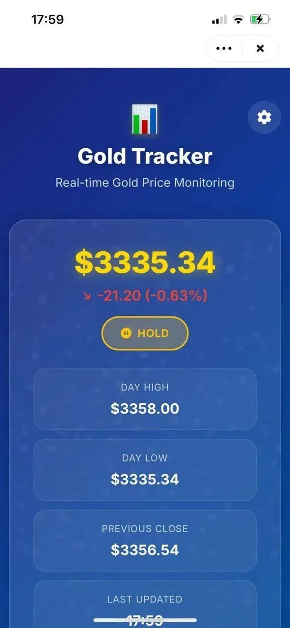 花 2 個“杏仁”(App 內的積分)體驗了一其中的一個黃金價格追蹤器的應用。結果還行,核心功能能用,可以實時顯示價格,就是數據加載稍微慢了點。
