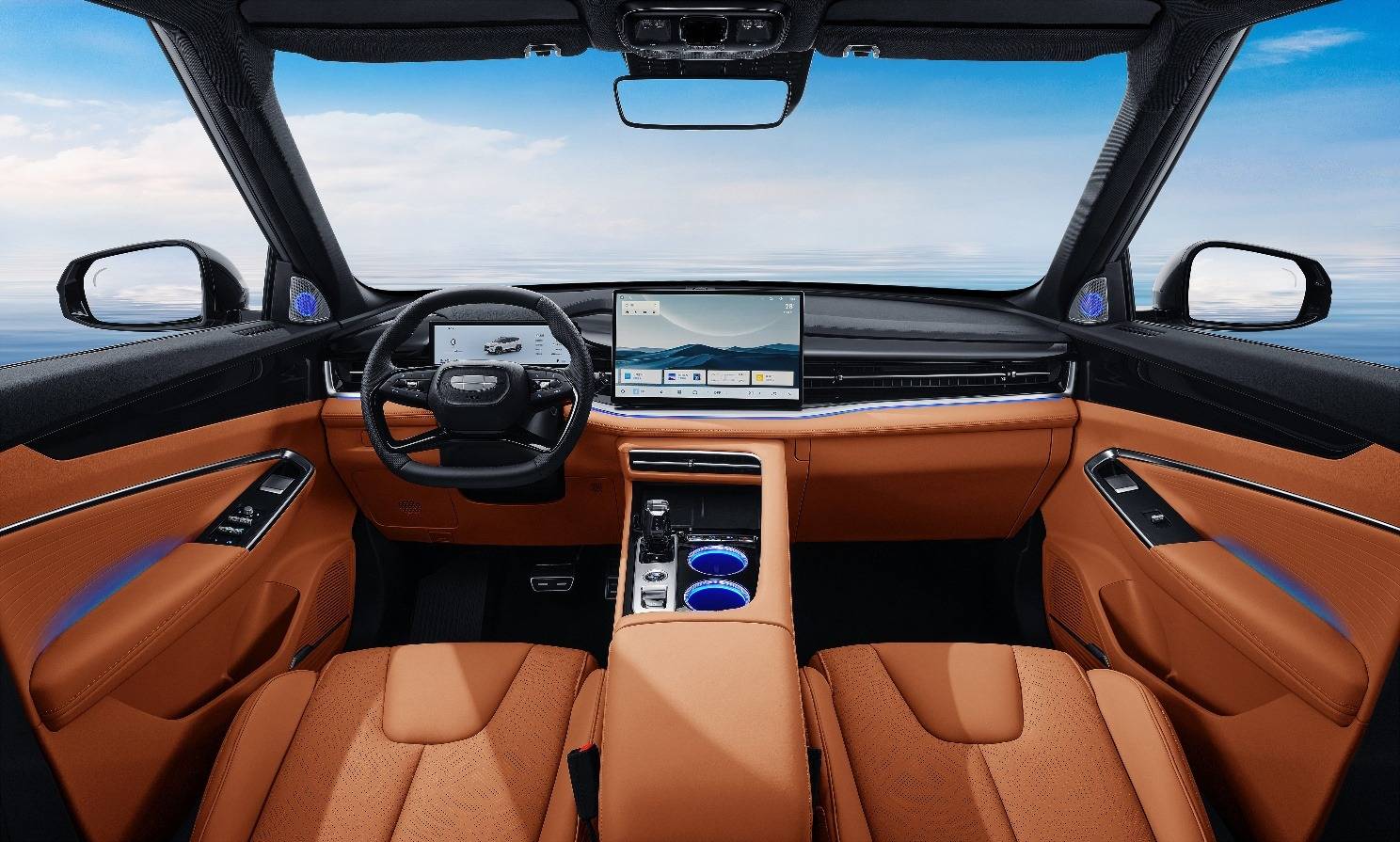 顏值方面,全新博越采用“新中式居家美學”設計語言,前臉12道豎向鍍鉻陣列搭配2.05米貫穿燈帶,配合琉璃藍等四款新配色,整體造型大氣穩重。內飾融入蘇州園林元素,配備256色氛圍燈、水晶擋把、墨鏡遮陽板等精致細節,營造出“移動茶室”般的雅致氛圍。