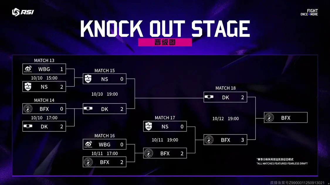 10 月 13 日消息,在昨日結束的首屆《英雄聯盟》亞洲邀請賽中,LCK 戰隊 BFX 在決賽以 3:2 的大比分力克另一支 LCK 戰隊 DK 獲得冠軍,BFX 也在淘汰賽中完成了對另外三支四強隊伍的“三殺”。