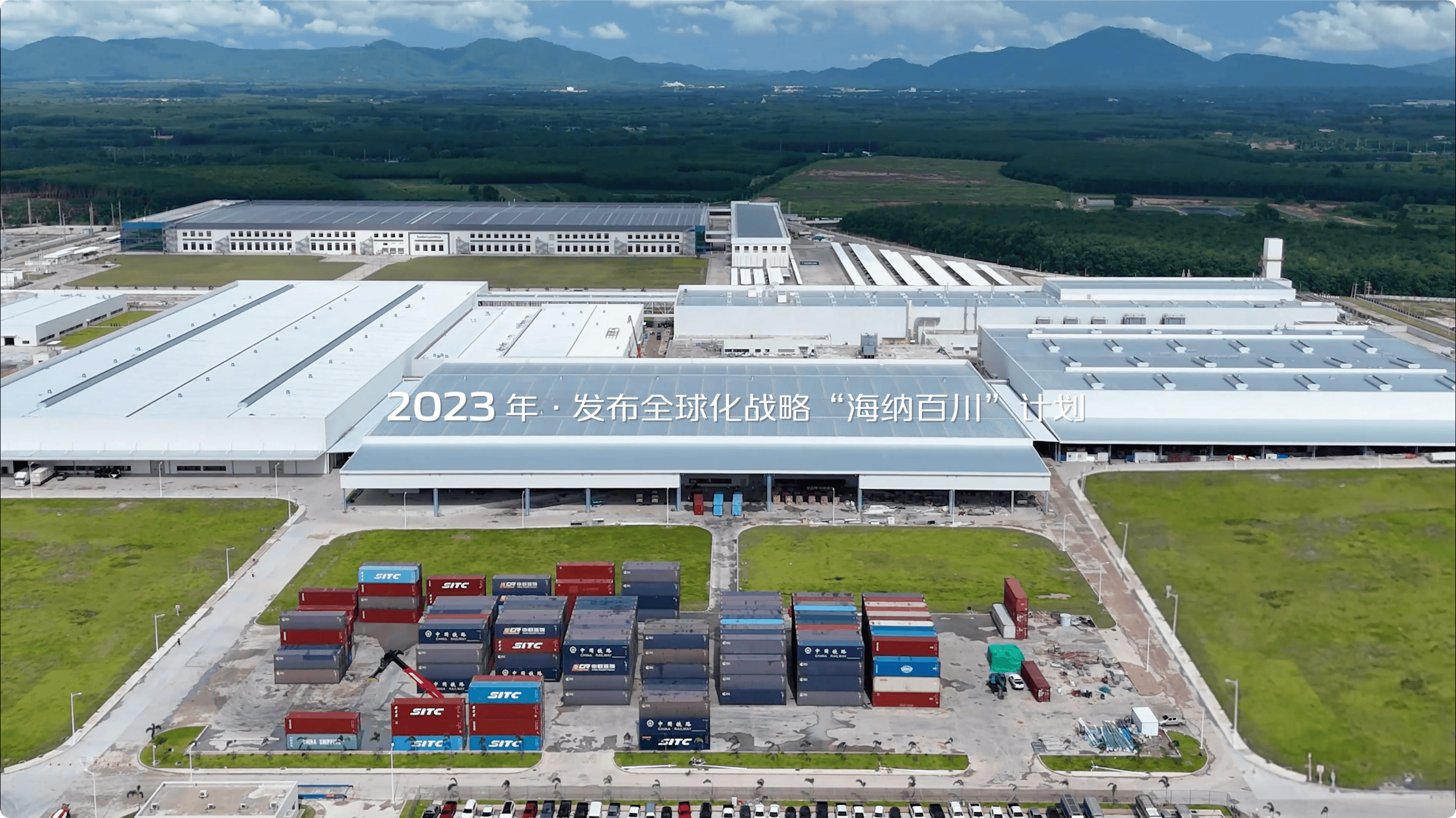 全球化“海納百川”計劃則是長安于2023年4月上海車展上提出的最新戰略,其目標不單單是出口幾輛車,而是本地化運營、體系化出海。布局的勢頭相當迅猛,全球20個規劃工廠,已建成9個,泰國羅勇新能源基地投產,英國、德國、挪威商品車發運……目前已進入103個國家,擁有超過14000個渠道網點。