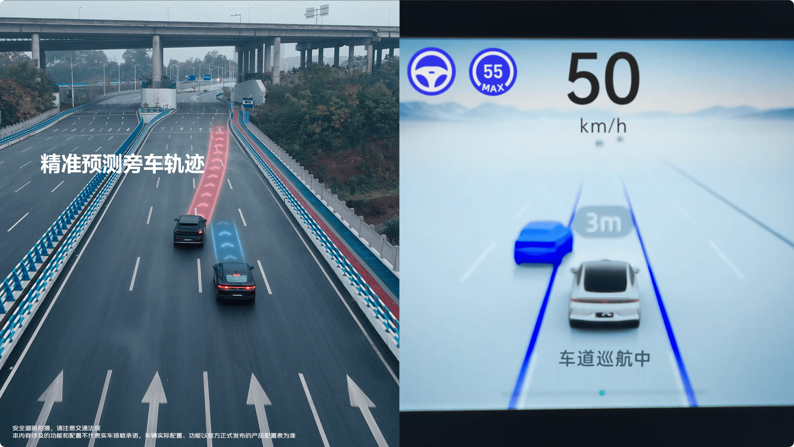 當隔壁車有貼過來的意圖,系統立馬識別,默默減速,保持安全車距,穩得像有駕校教練在旁邊悄悄踩了剎車。