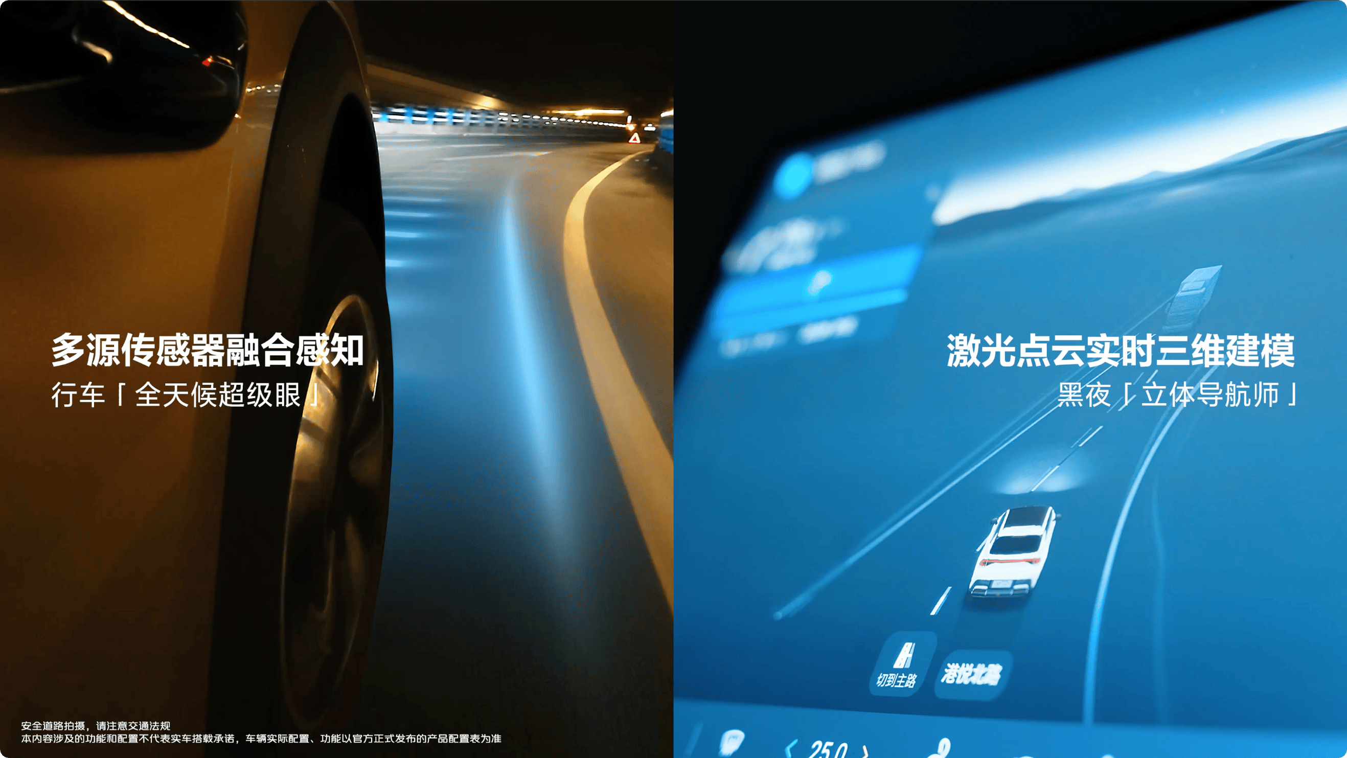 夜間行車,最怕“看不見”的危險。天樞智能激光版,給車裝上了“透視眼”,200米外的障礙物也能看得一清二楚,平穩減速,從容應對。
