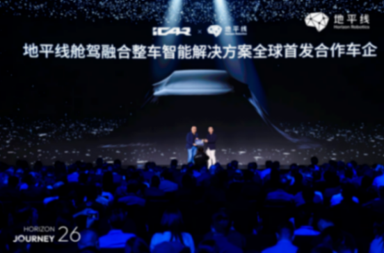 在2026地平線年度產品技術發布會上,iCAR品牌事業部總經理蘇峻受邀登臺,并與地平線創始人兼CEO余凱共同宣布,iCAR將成為地平線艙駕融合整車智能解決方案的全球首發合作車企。