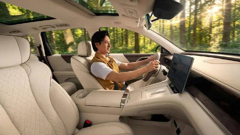 在設計層面,星光 L 以中式自然美學為內核,兼顧顏值表現與家用實用性。整車遵循 0.618 黃金比例與 1.1 倍寬高比打造,車身尺寸為 4980×1930×1760mm,身姿舒展大氣;前臉搭配星環燈組與貫穿式后尾燈,視覺辨識度突出,同時提供蒼松綠、沁湖藍、墨竹黑、山巖銀、晨霜白五款車色供用戶選擇。內飾設計延續外觀的典雅風格,座艙以 6.32㎡軟包材質覆蓋,搭配全域防撞角設計,兼顧細膩觸感與出行防護;提供云釉白、砂陶棕兩種內飾配色,融入方勝紋座椅紋路、原木觸感飾板等中式細節,配合 256 色全色域氛圍燈,營造出兼具質感與溫度的座艙氛圍。針對家用出行的乘坐需求,新車搭載經過千次仿真與實物評審優化的人體工學座椅,可覆蓋 95% 用戶體型,完美貼合人體曲線,緩解長途乘坐的疲勞感。