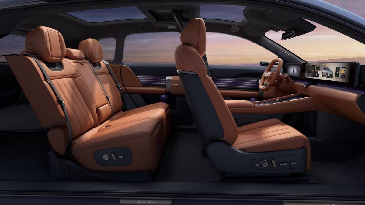 步入奧迪E7X豪華寬綽的車內空間,甄選高端材質與精湛匠造工藝相得益彰,搭配豐富的數字化功能,全方位營造愉悅愜意的氛圍。無論是長途遠行,還是穿梭于城市之間, 由AI 賦能的奧迪智能助手(AUDI Assistant)均可化身貼心的車載伴侶,帶來流暢便捷的數字體驗。車輛提供五座與四座兩種布局,并配備不同款式的零重力座椅,帶來極致舒緩的乘坐感受。同時,21.4英寸后排娛樂屏可從車頂電動展開,為后排乘客打造專屬個性的影音娛樂體驗。