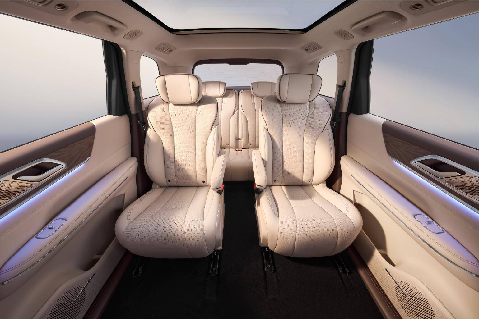 尺寸方面,其長寬高分別為4980/1930/1760mm,軸距達到2950mm,采用六座布局。車內配備大尺寸中控屏,下方擁有手機無線充電面板,還提供256色氛圍燈,副駕座椅集成老板鍵,后排配備小桌板。動力方面,將搭載1.5T/1.5L插混動力系統,同時,將標配3C快充。