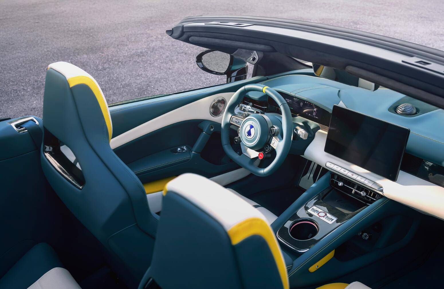 新車設(shè)計(jì)風(fēng)格很有流線感,車身多處配備空氣動(dòng)力學(xué)套件,還有軟頂敞篷機(jī)構(gòu)。據(jù)介紹,新車車內(nèi)采用4座版布局,車門采用隱藏式門把手,大尺寸輪圈搭配運(yùn)動(dòng)卡鉗,造型很酷。