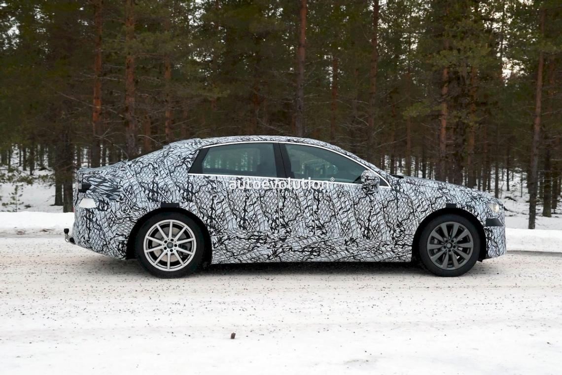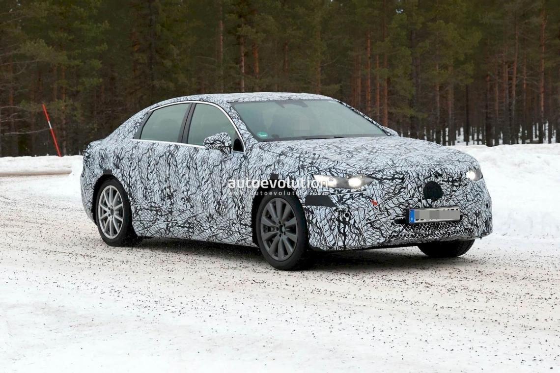 從諜照來看,該車并未和之前的EQ一樣采用弓形車頂,而是標準的三廂版造型,同時車頭是造型圓潤的封閉式中網,中網中央將擁有一個奔馳大標。新車將搭載全新的LED大燈,造型較為犀利,車頭下方將配備一個長條形的進氣口。