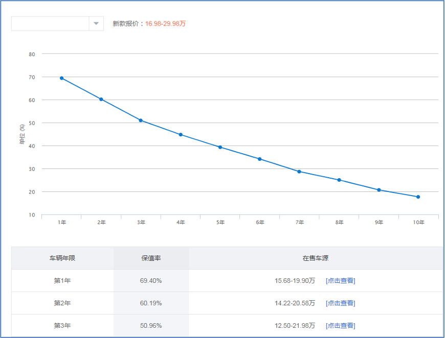 以國內某著名新能源品牌的旗艦轎車為例,這款車無論是銷量還是存量都比較龐大,但一年的保值率也只有70%左右,跌幅約為30%,比特斯拉還猛。