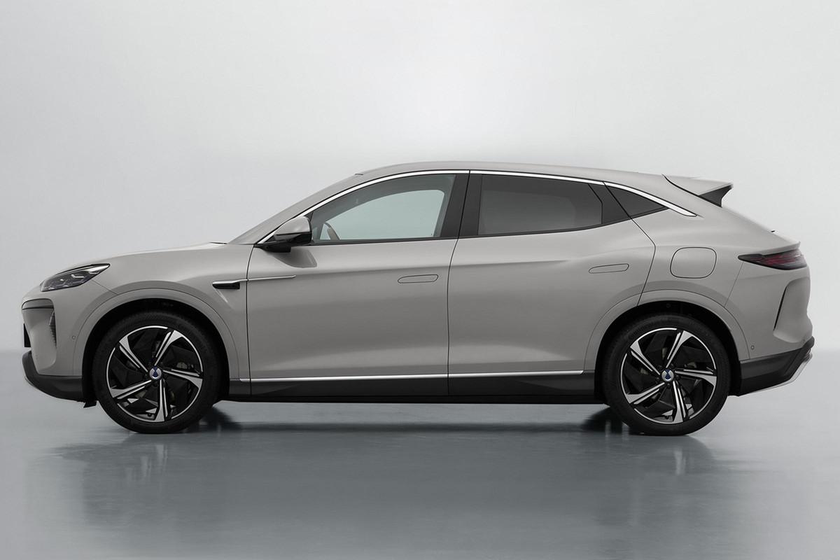 新車的側面設計呈現出低矮且飽滿的車身姿態,車頂的下滑式設計增強了運動感。車窗上方的細長鍍鉻飾條增添了精致感,車門上的兩條平行腰線設計提升了層次感,輪眉的外擴線條增加了車身的飽滿感。車尾設計鋒利,車頂的平直擾流板和鏤空式尾翼造型強化了運動定位,傾斜的擋風玻璃使尾門更加顯眼,貫穿式尾燈細長且內部光源設計提升了車輛的視覺寬度。保險杠兩側的熏黑進氣口和底部的大面積熏黑飾板,使得車尾看起來更加厚重。