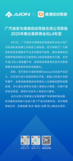 可以說,廣汽埃安與滴滴自動駕駛聯合打造的“安滴模式”,有效實現了雙方優勢的“1+1>2”。隨著安滴科技首次實現L4商業落地,背后的廣汽埃安也成為了首家邁入L4無人駕駛實操階段的車企,構建了全球首個“技術+智造+運營”L4商業生態閉環,在其他車企還在探索L4時領先一步提出具體的量產計劃,2025年實現L4量產,生產規劃達10萬臺量級為消費者帶來更安全、更便捷、成本更低的顛覆性出行體驗;同時也在Robotaxi這一自動駕駛技術最復雜、應用規模最大的場景中快速積累優勢,成為行業發展的“領跑者”“火炬手”。