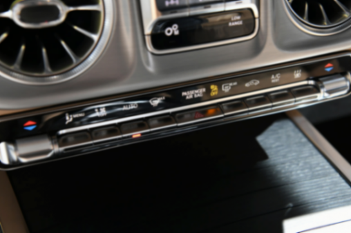 新款G500提供后排MBUX娛樂系統可選,選裝后能得到兩塊11.6英寸的后排觸控屏,為后排提供娛樂功能,也可以和中控屏幕進行聯動。后排配有獨立空調以及兩個出風口,周圍帶有縫線裝飾。