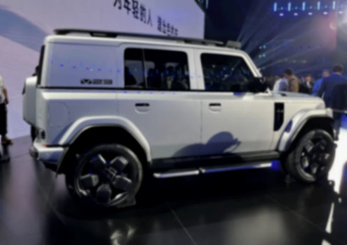 側面讓人印象深刻的就是C柱之后的設計了。雖然造型上依舊是方盒子的既視感,但是封閉的側窗玻璃,以及整體金屬質感的視覺沖擊,都讓整臺車有著十分炫酷的感覺。就這個外觀,對于稍微有些越野情結或者喜歡造型科幻的消費者,就這個外觀肯定是走不動道的。
